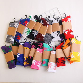 Ucuz yüksek kaliteli akçaağaç yaprağı unisex çorap funky pamuk ekip calcetines moda renkli ot uzun çorap