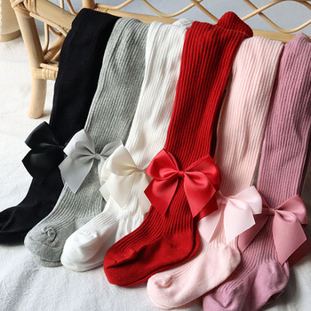 Bebek fiyonk tayt nervürlü pamuk örme tayt çoraplar renkli 0-6t bebekler Toddlers İspanyol tarzı külotlu çorap tayt